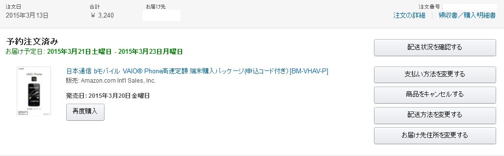 注文しました・安定のamazonイオンで契約した方が手早く手に入るけど、遠いので行く気力がない。なので、ネットで予約。これって購入コードが送られてくるだけで、日本通信のサイトで個人情報なりの手続き踏まなきゃならん。しかも一日遅れ。急いでないから別にいいけども。ならメールでええやん、と思ってしまう俺ガイル。すごい面倒だけど、ま、仕方ない。こんなものを一括で購入する気もないしね。将来的なMNP弾として二年契約してやるよ(謎の上から目線)。にしても開通費用三千円は高杉。五百円で充分だろうに 2015年 03月 14日| 日記|comment(0)