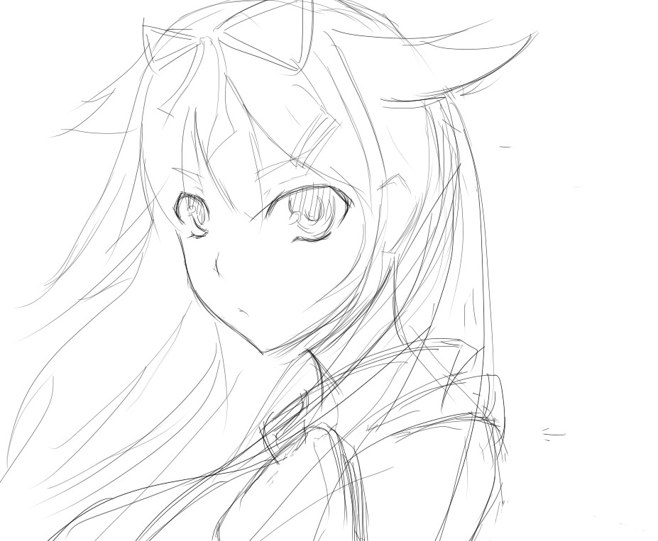 そして描きあがって数十分経った今見直すと、肩が下過ぎる。もうちょい上だこれ。